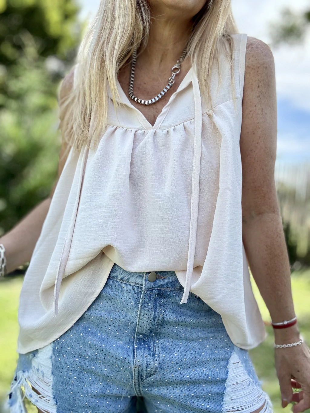 Musculosa camisola de crep plisada en el busto de 130 cm de contorno por 60 cm de largo con tiritas en el escote color beige